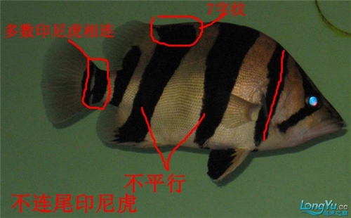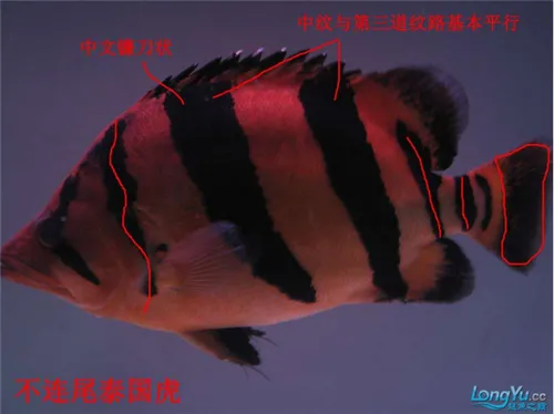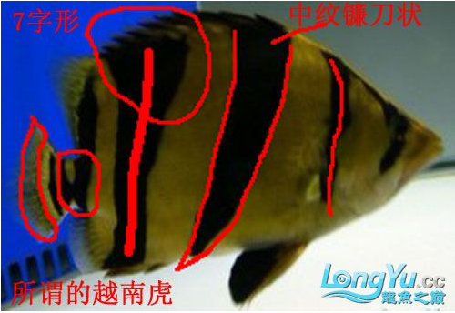 4、尾柄:越南虎的鳍和尾柄和泰国虎的相当,但是在30厘米以上多数的鳍和尾柄是白色透明带黑版,和泰虎有很微妙的区分。